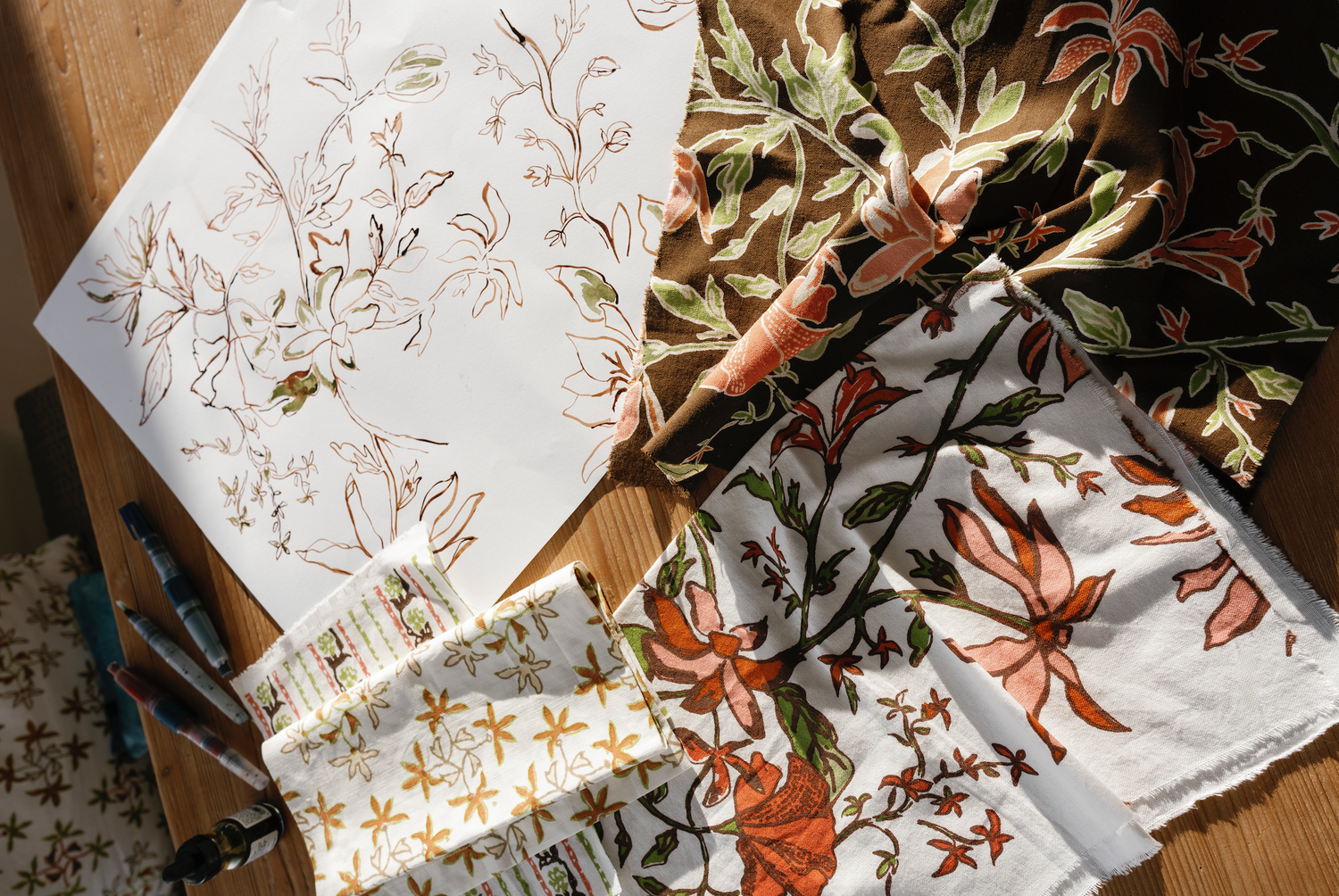 Celeste is a special kind of blockprint. Medium in scale, each row of florals in the repeat change color, creating an ombre effect. The touch of embroidery in each bud’s center add’s a touch of dimension that draws you into the design. Celeste compliments many designs in our collection while introducing a new scale to our design offerrings.