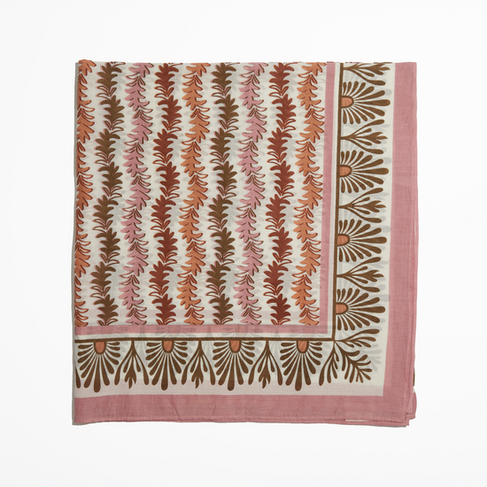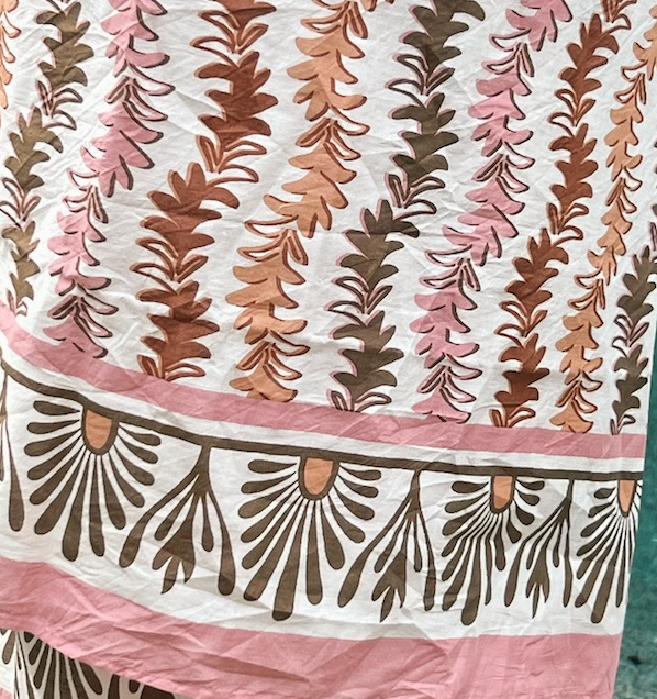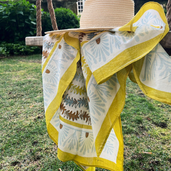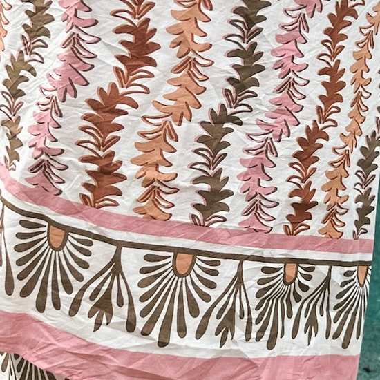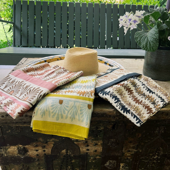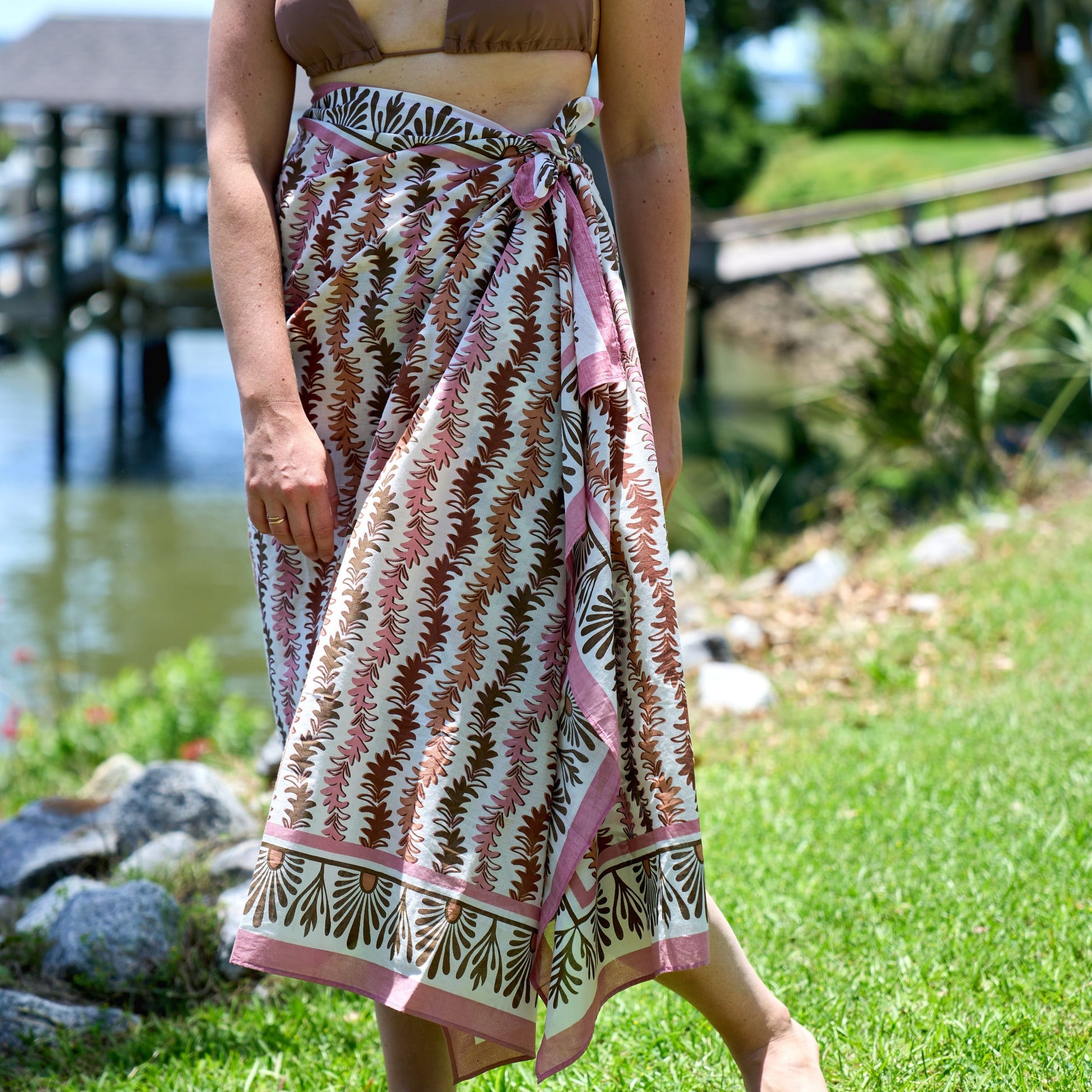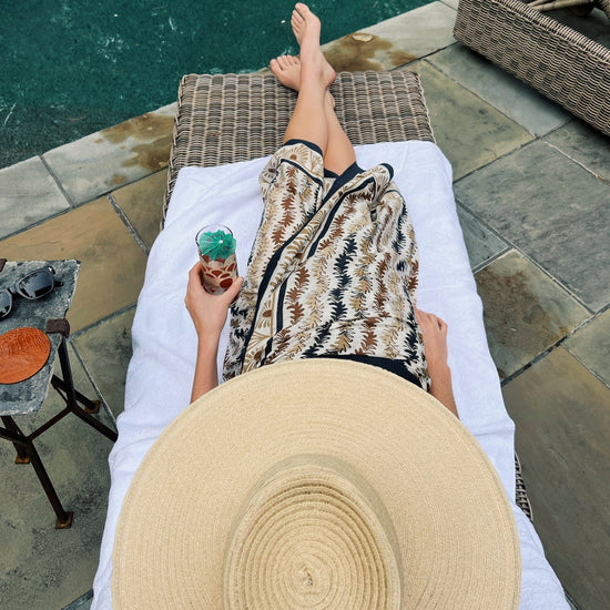 Our Leyla Sarong is the perfect companion for your summer travels. Available in Sungold, Siena, and our new colorway, Brulee, our hand printed sarongs can be styled in various ways and are the perfect pop to any summer outfit.
