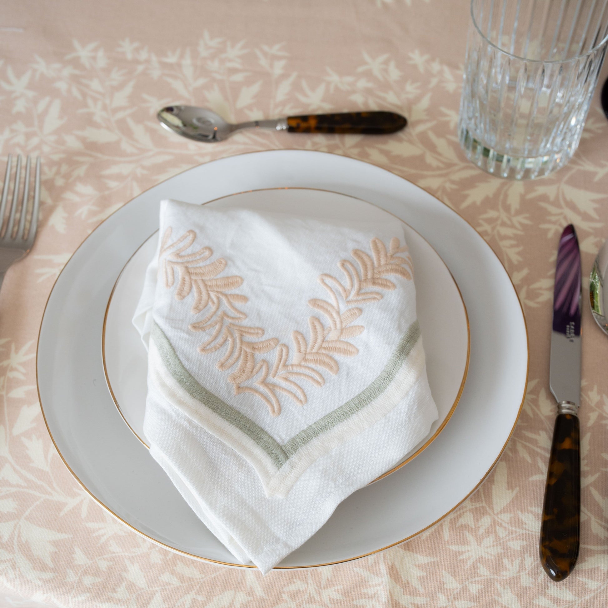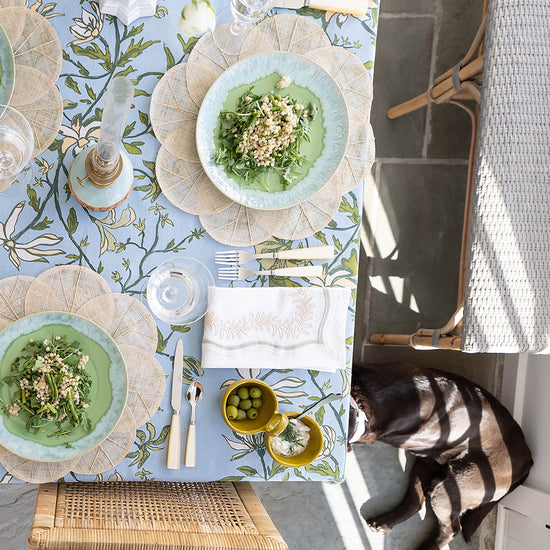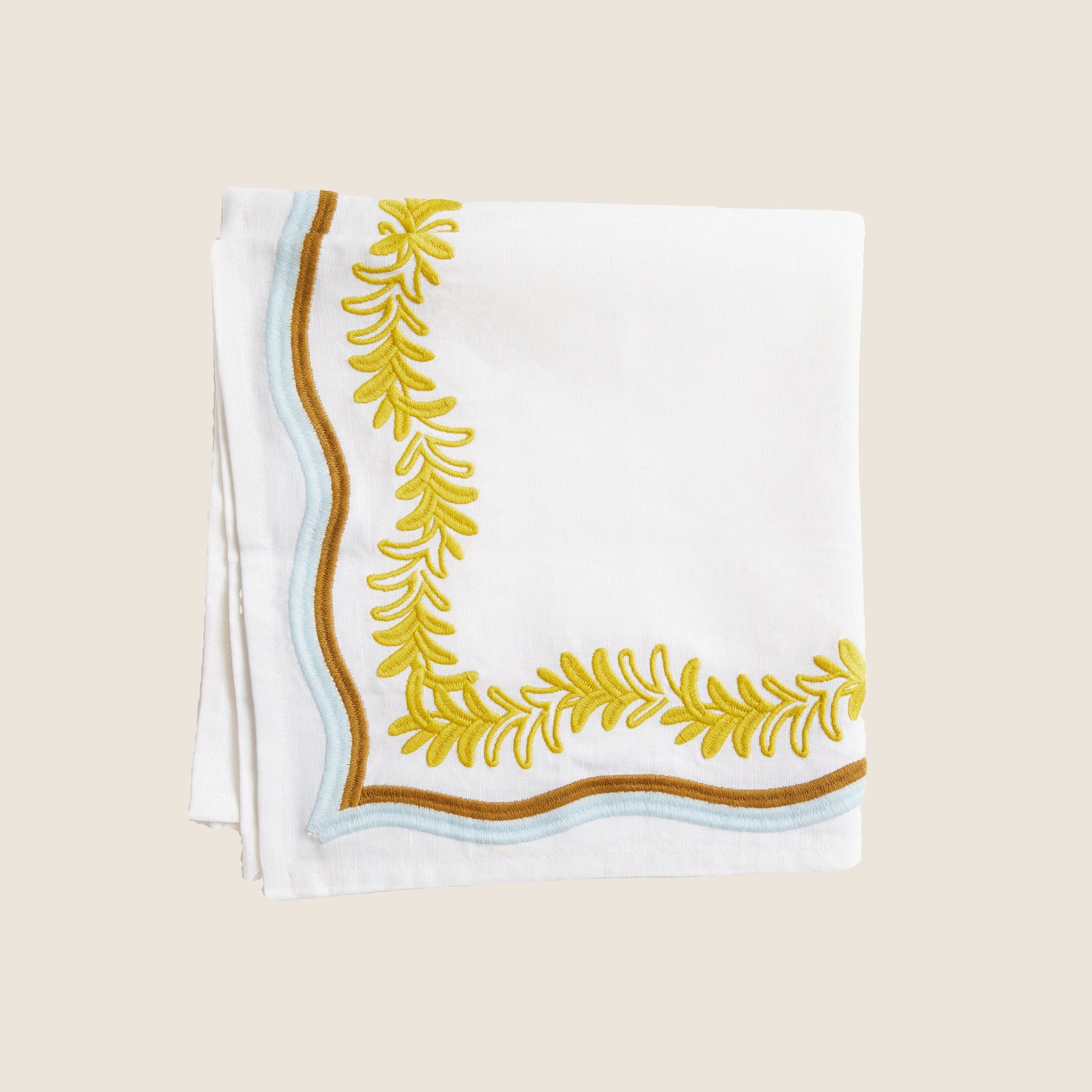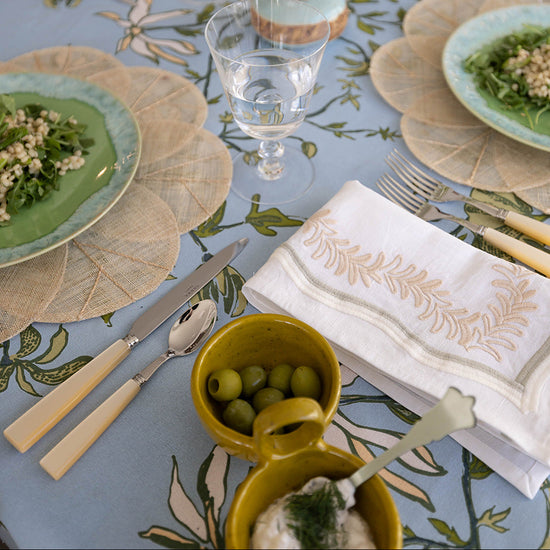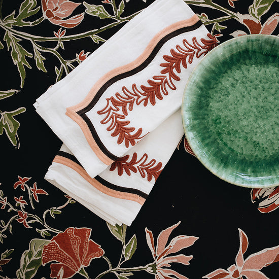 A playful embroidered leaf silhouette, our Palmerie napkin adds a pop of sophisticated color to the table.