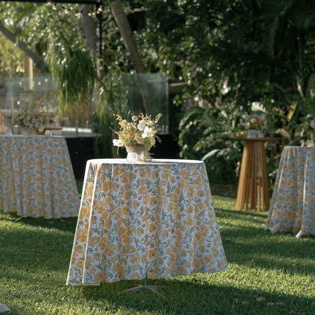 The Poppy tablecloth is the perfect burst of summer for your table. Available in 2 colorways, Cloister and Orangerie, and in round and rectangle, the Poppy tablecloth will fit all your summer entertaining needs.