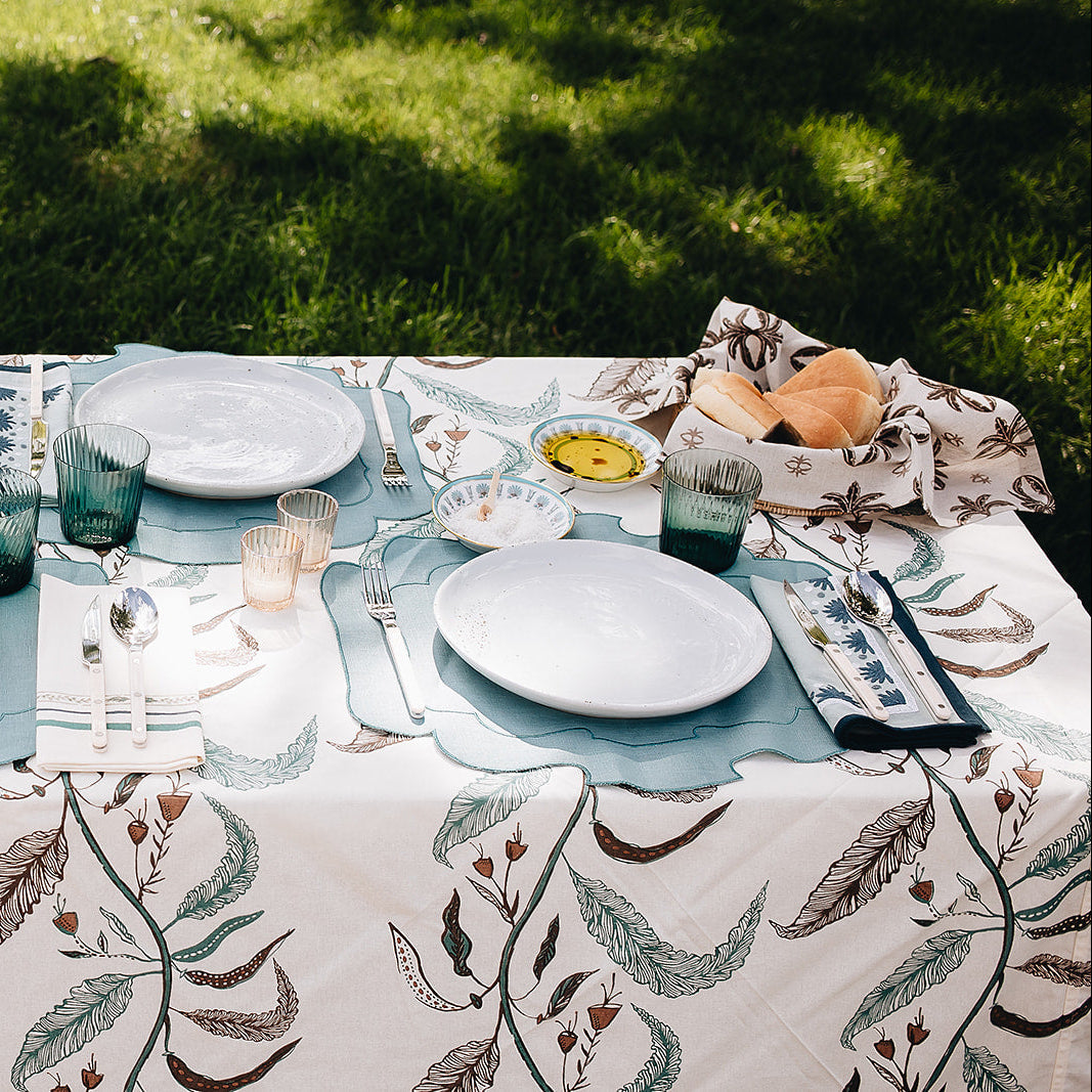 Tuileries Tablecloth Blockprinted Trim